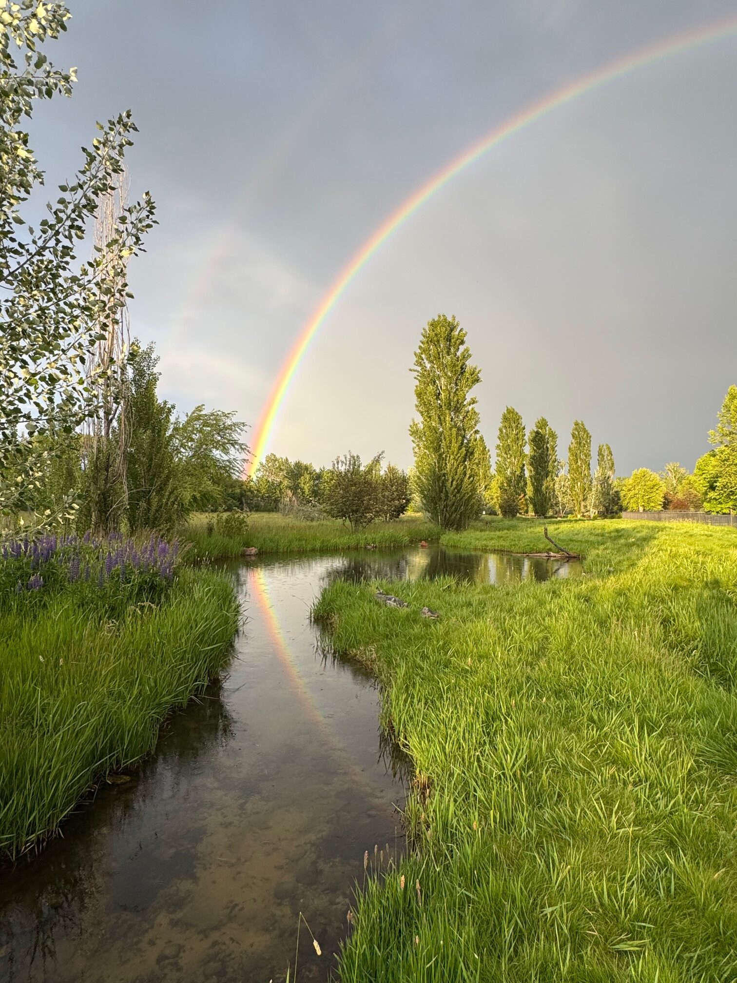 At the end of 2024 we ended the practice of grooming the banks of the ditch, and invested in bringing in boulders and driftwood along the length of the creek to make it more natural looking.