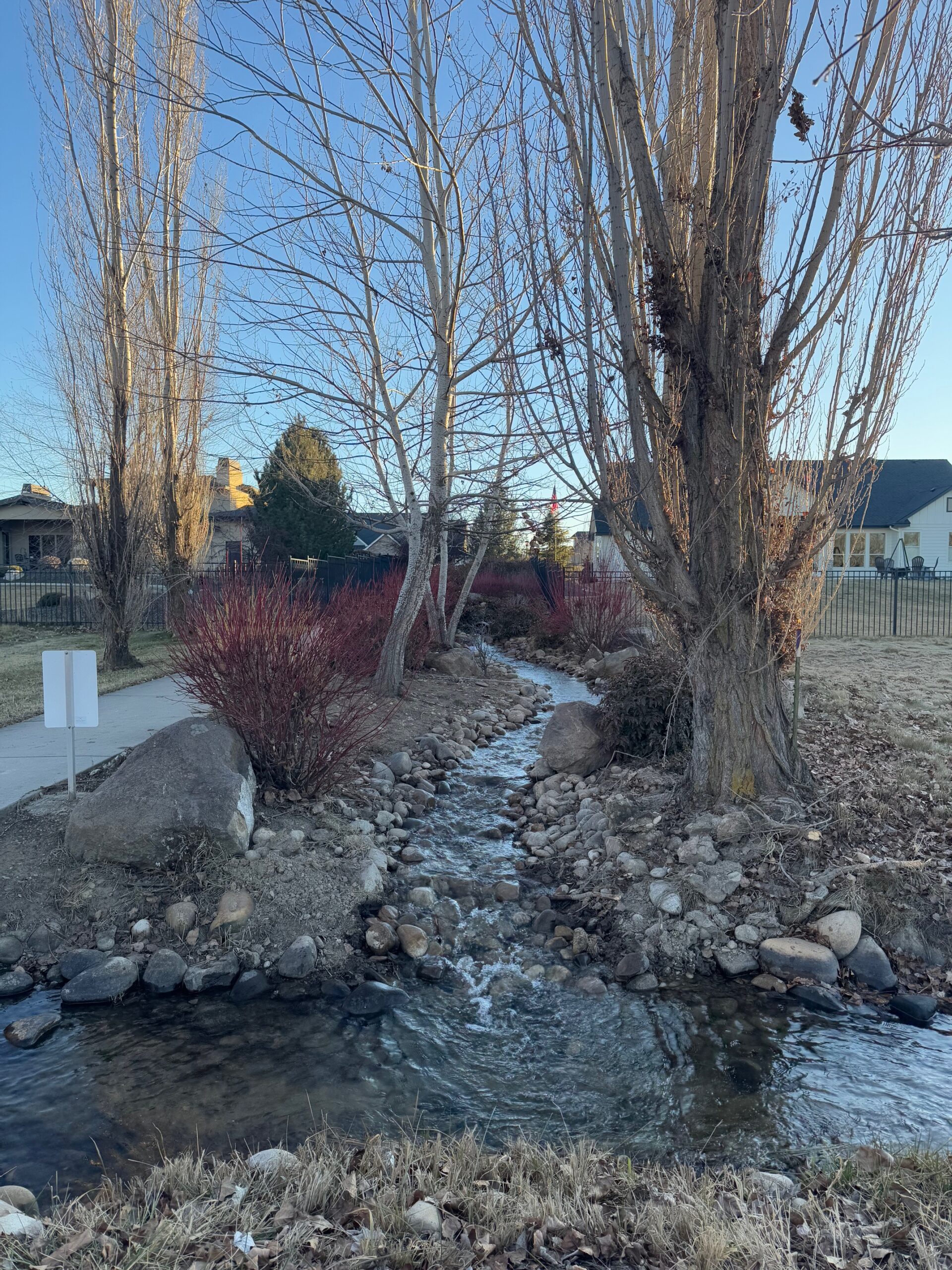 In the coming budget years, we plan to make additional investments in naturalizing the creek. Things we are considering are access paths through the fescue from homeowner back yards (those who opt in) to the nature trail; and additional small plantings of low growing shrubs and grasses that will not block out views but will help the creek seem even more natural.